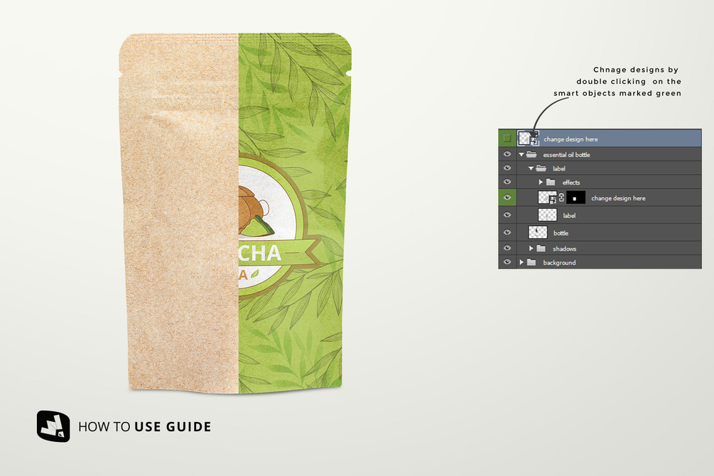 Craft Paper Pouch Packaging is recyclable and great for our environment. This craft paper pouch packaging mockup is a great choice to showcase any food packaging label design. It’s creative and efficient. This paper pouch packaging mockup is professional, as it comes with a three-set and two-set PSD file. The base image high resolution and has a great paper texture effect to make any design realistic. The pouch packaging mockup has a detailed guide video with it to help your work process easy and short.